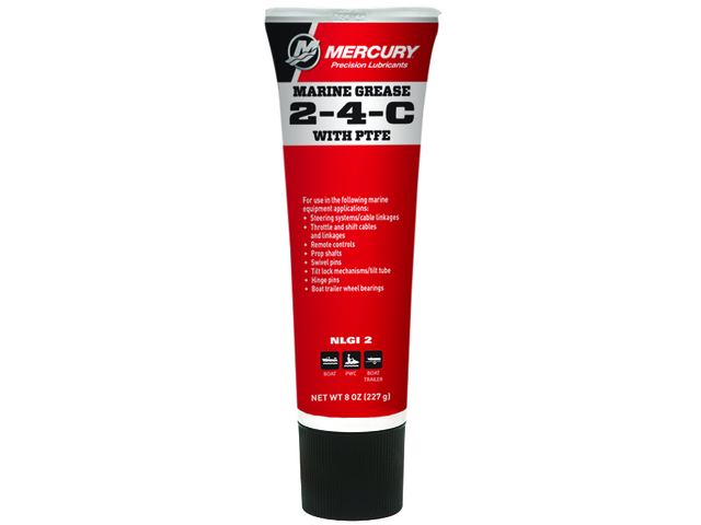 Grasa marina multifuncional de alta calidad con PTFE (Teflón®), desarrollada específicamente para entornos náuticos. La fórmula 2-4-C de Mercury proporciona una lubricación superior, resistencia al agua y protección contra la fricción extrema, la corrosión y el desgaste.